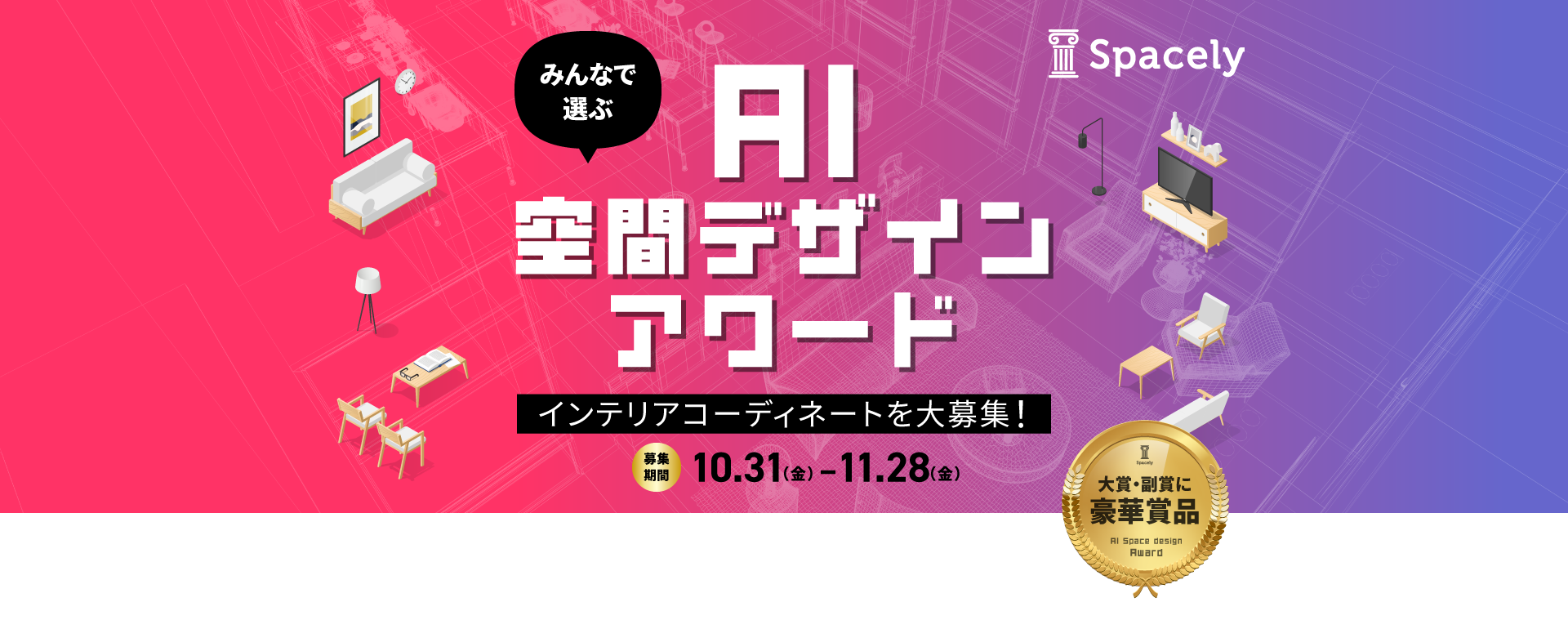 スペースリーの提供サービス「AI空間設計」を活用して、指定の物件写真(パノラマ)へインテリアコーディネート(CGホームステージング)を施してください。